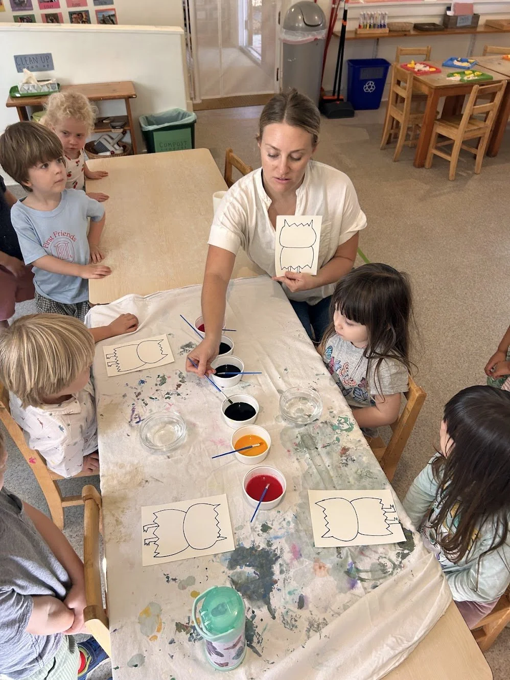 The start of school can bring up many emotions for both children and their grown-ups, and at First Friends we prioritize supporting children in feeling safe after separating from their loved ones and developing the emotional fluency and skills to manage their feelings throughout the day in safe and healthy ways. We do this by using language that helps children identify and name their emotions while also practicing strategies that build self regulation skills. Together we read The Color Monster by Anna Llenas. We took the time to reflect about our feelings and how it is okay to feel a lot of emotions all at once. We can be sad, anxious and happy at the same time, as well as excited and mad. We talked about the many colors of emotions in the Color Monster and then had the opportunity to create our own expressive pieces of artwork using the colors of the feelings we had at that moment. We reflected on what the word “emotions” means-it’s the feelings we feel inside our brains and bodies. We love hearing about how the children feel and how they make sense of their own emotions.
