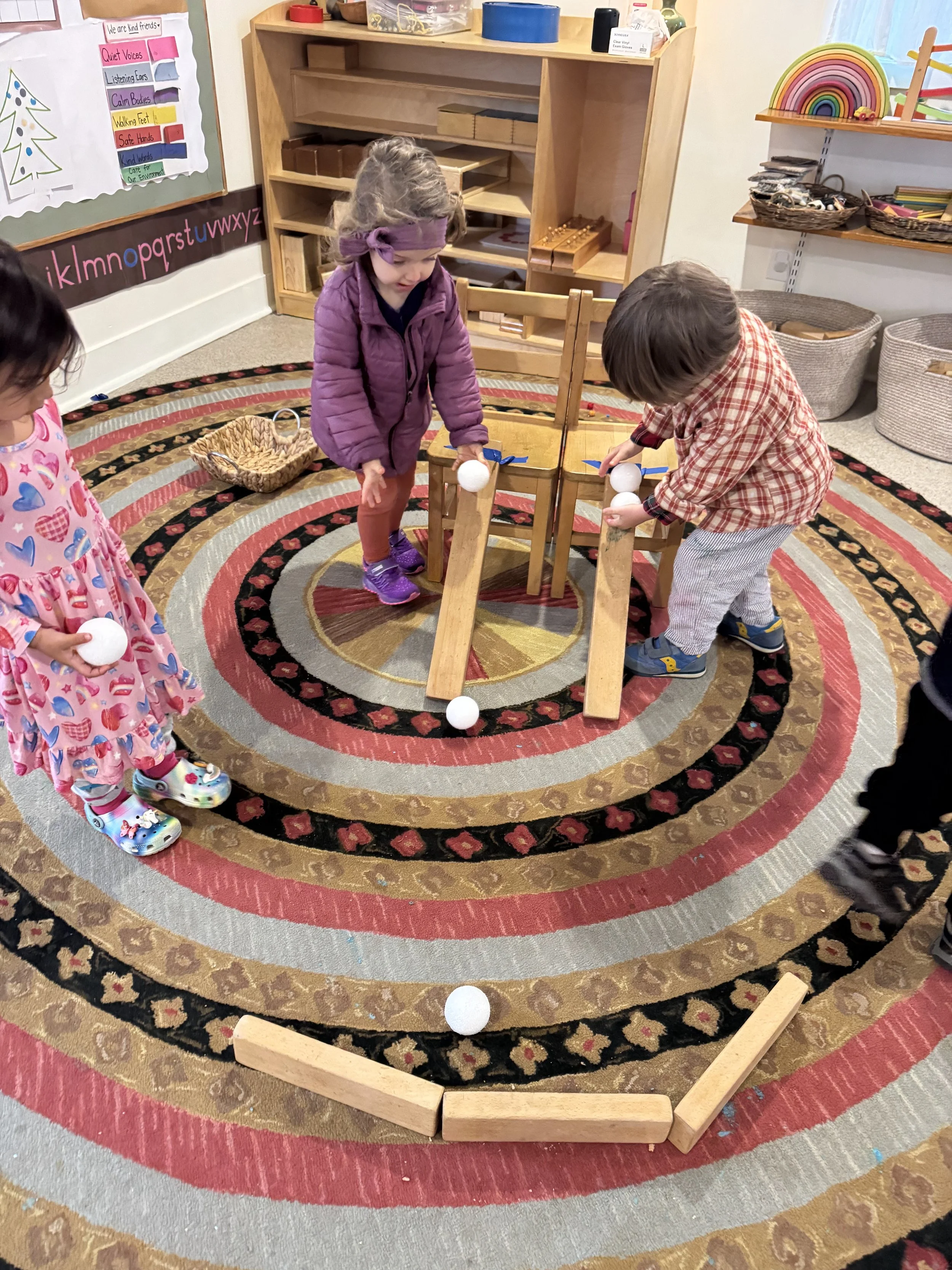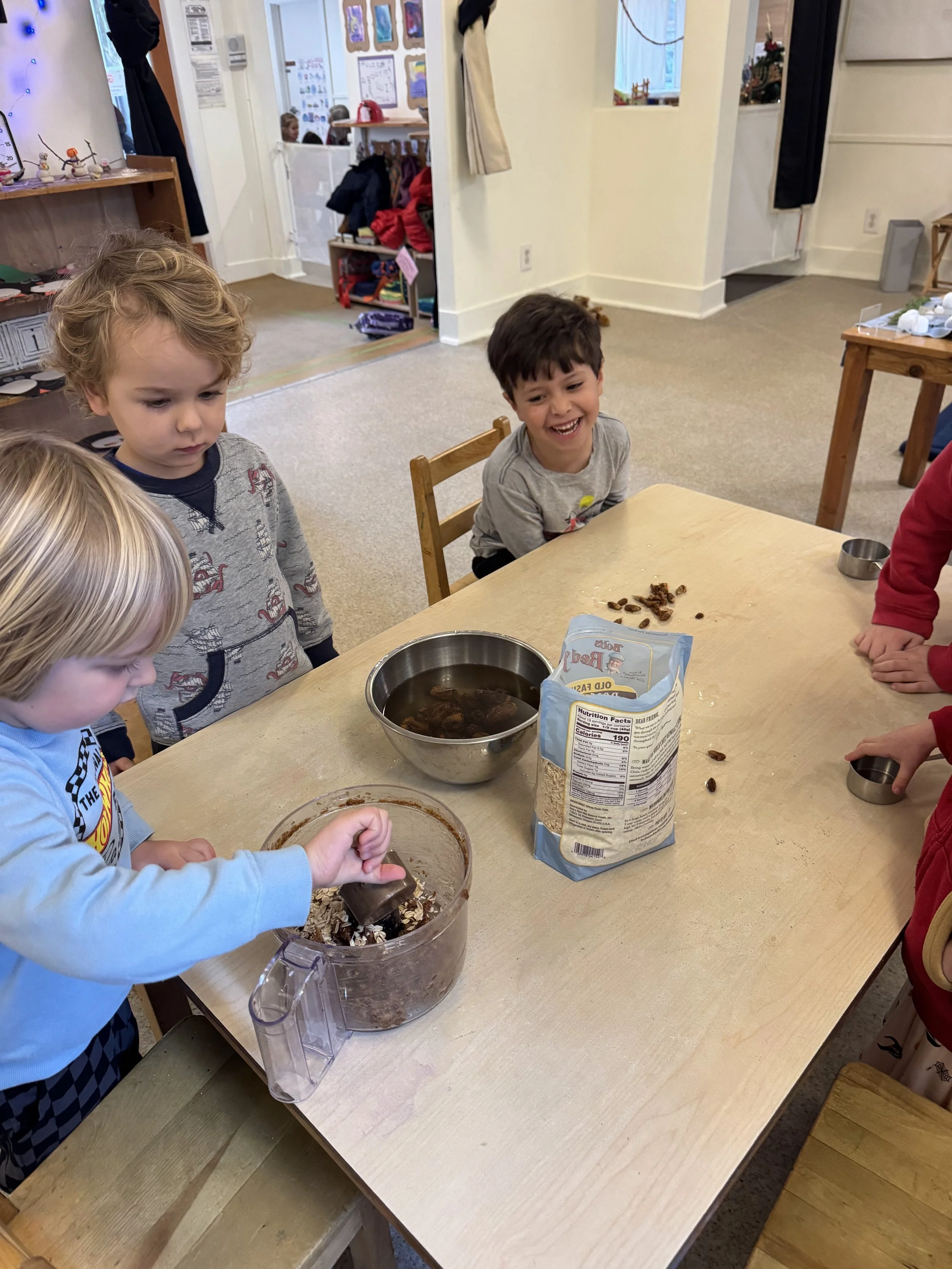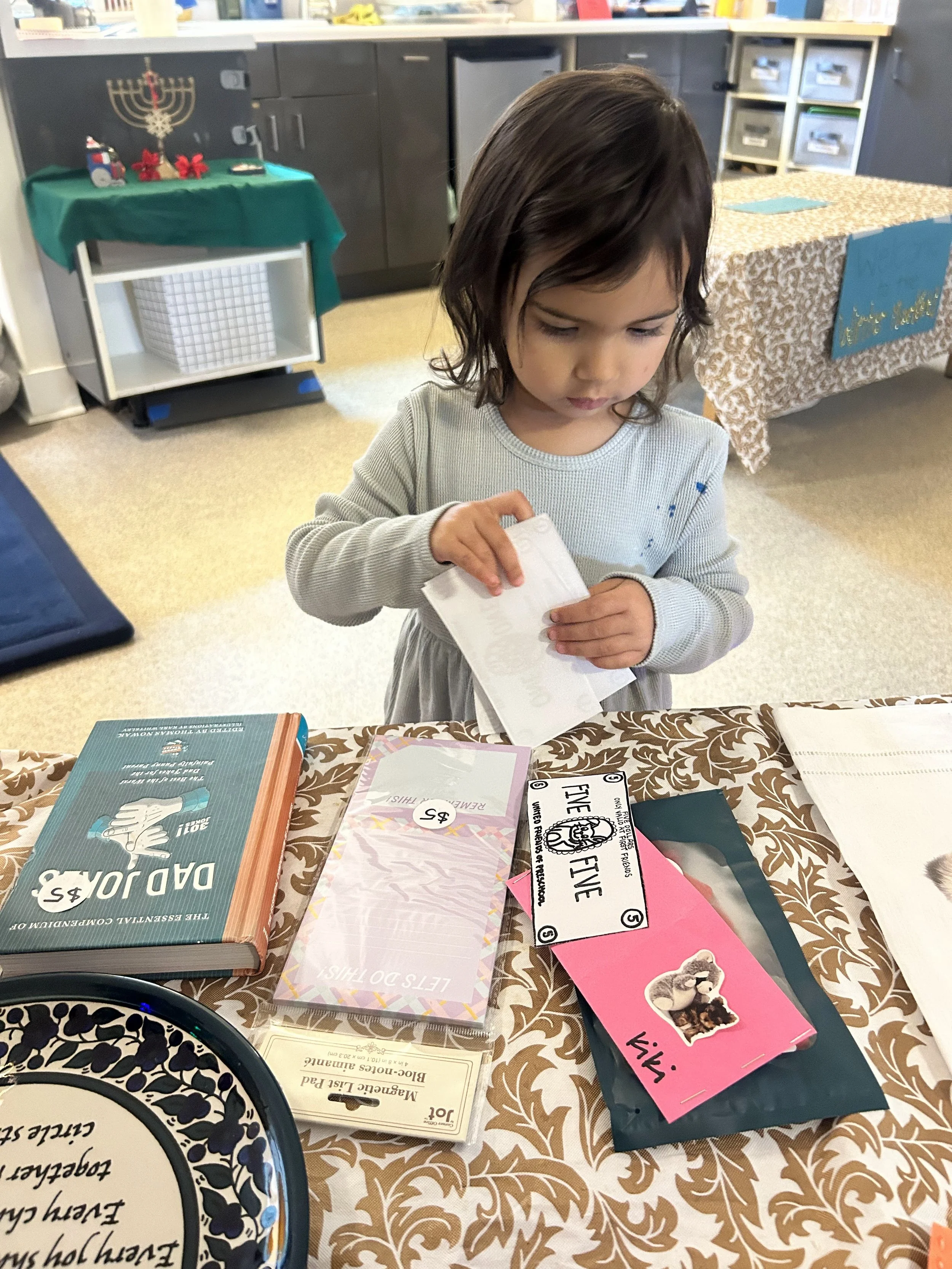 One of the most impactful experiences this month was our classroom “holiday market.” Using pretend money and real items, the children shopped for gifts for members of their immediate family for whom they wish to buy (and even grandparents too!) and assisted in beautifully wrapping their gift(s). This activity encouraged perspective-taking, patience, and the understanding that giving to others can bring joy. It was especially meaningful to observe children work through the realization that the gifts were not for themselves, but for someone they love.
